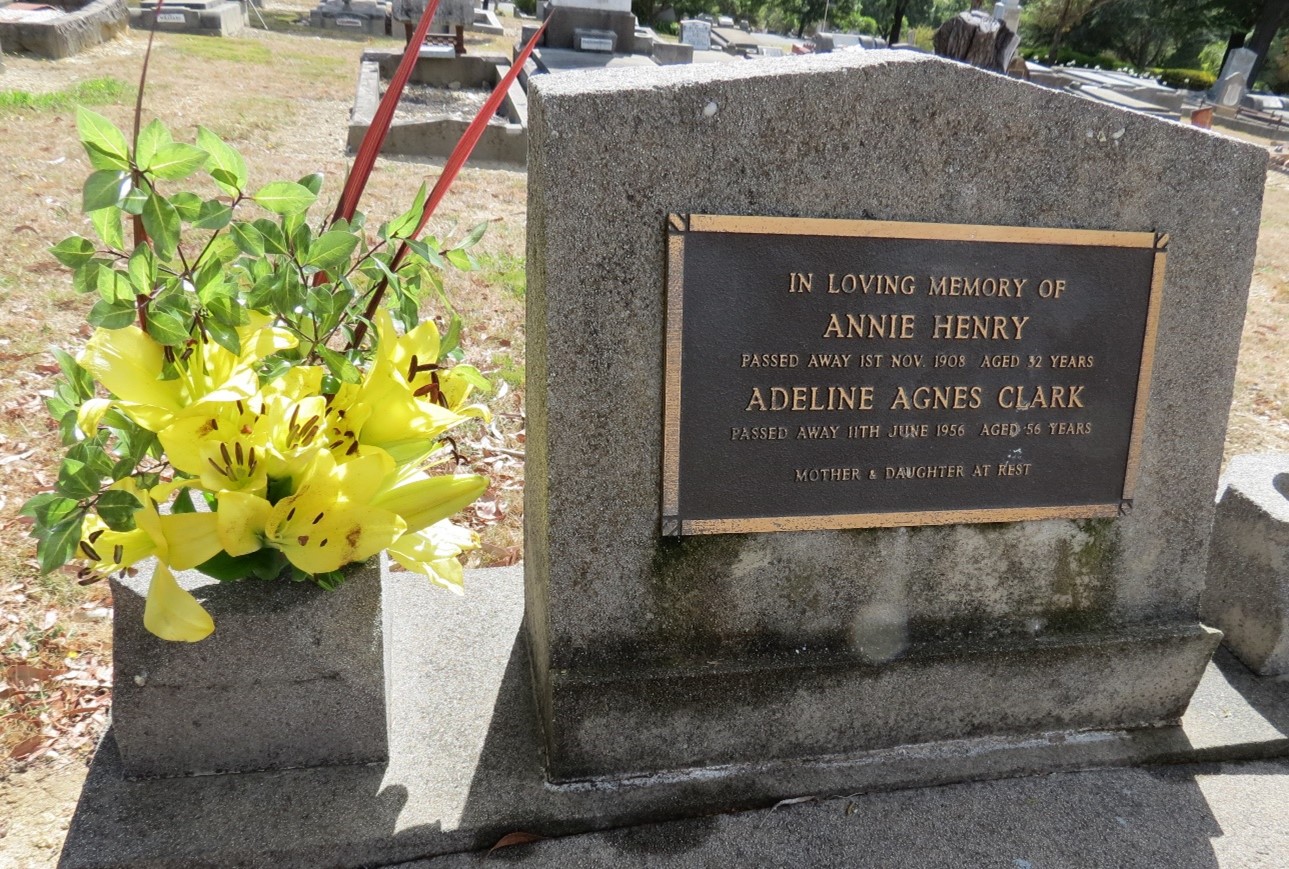 For Christmas 1954 Adeline gifted her four surviving adult children, Dot, Jess, Elsie, and Billy, a colour photographic portrait. In a lovely blue dress, she presented as a confident, serene and healthy woman, with no inkling of past troubles and certainly no hint of a dark cloud that would bring the final blow. Sadly, eighteen months later Adeline, in her mid-fifties, died unexpectedly from a brain tumor. She was buried with her mother in the Ballarat New Cemetery, Presbyterian B, Section 7, Grave 24.