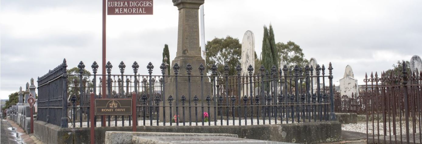 Tangible evidence of the Eureka rebellion still exists, with memorials to the soldiers and gold diggers located not far from one another at the same site. The tombstones and graves of many other participants in the Eureka battle are at both Old and New Cemeteries. Tombstones of Chinese miners, Jewish men, women and children, and other multicultural groups, are evidence of the mix of nationalities that were present on the early Ballarat goldfields. The contribution these groups made to early Australian society and our national identity is enormous.